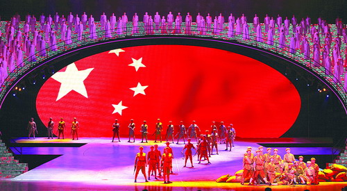 大型音樂舞蹈史詩《復(fù)興之路》藝術(shù)地再現(xiàn)了從1840年至2009年這169年歷史長路中的重要歷史拐點,形象地說明,是歷史和人民選擇了中國共產(chǎn)黨、選擇了社會主義道路,是中國共產(chǎn)黨領(lǐng)導(dǎo)中國人民走上了民族獨立和民族解放的道路,走上了社會主義革命和社會主義建設(shè)的道路,走上了改革開放和現(xiàn)代化建設(shè)的道路。