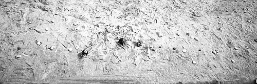 為什么叫恐龍澗?記者決定一探究竟。在諸城龍都街道庫溝村北的一個小嶺下,一條被塑料布和草氈覆蓋的隆起帶橫亙在黃土丘之間?脊湃藛T向記者介紹說,這是其中一處大型恐龍群的“墓地”,因化石眾多,所以得名“恐龍澗”。