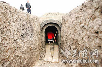此地一共發(fā)現(xiàn)了大大小小20多座墓葬,但在已清理的6座墓葬中,有3座規(guī)格較高的墓葬已被盜!爸灰巧晕⒋笠稽c(diǎn)的墓,基本上都有被盜挖的痕跡,一些盜洞都沒有回填。這是很不正常的現(xiàn)象。”襄樊市考古所的考古隊(duì)員王志剛認(rèn)為,這些墓群處于東周地層,很可能是春秋早期鄧國的公共墓地。