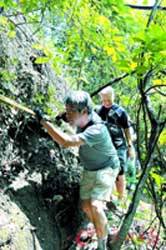 在剛剛結(jié)束的對廣東丹霞山進(jìn)行實地考察評估中,兩位IUCN考察專家格里姆·沃博伊斯博士和禹卿植博士對照申報世界遺產(chǎn)符合的標(biāo)準(zhǔn)、提名地保護(hù)管理狀況、當(dāng)?shù)孛癖姷闹С謶B(tài)度三個方面進(jìn)行考察評估。專家還深入無人區(qū)進(jìn)行實地考察(見左圖),穿越大石寨、大石坳、清風(fēng)寨、翔龍湖等地了解遺產(chǎn)資源和保護(hù)管理情況。他們還到瑤塘新村與當(dāng)?shù)卮迕褡劊蜕陥笫澜邕z產(chǎn)的意義和利弊進(jìn)行了交流詢問。