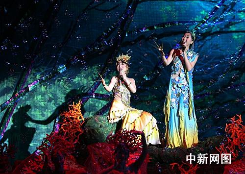 同樣,在歌舞《茉莉花》中,30把手工制作的茉莉花傘成上演了一把變臉絕活。茉莉花傘一開像一朵特寫的茉莉花瓣,一合則像潔白的茉莉花束。特別是在開合之見,舞臺燈光、演員服飾、舞臺背景也不斷變化,剛剛一身素衣的少女突然搖身一變,換上了紅色旗袍,清新與熾熱交錯間帶出了不同的茉莉風韻。(完)