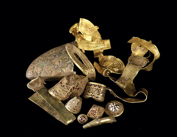 今年7月,考古人員特里·赫伯特在英國中部的一個農場中發(fā)現了迄今最大的、盎格魯撒克遜時期的寶藏,包含1500余件金、銀制品,其歷史可追溯至17世紀。