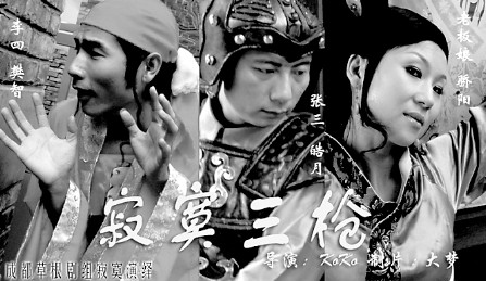 近日,文殊坊一牌坊內(nèi),一群身著奇特服裝的年輕人引來(lái)不少游人注目。女子身著紗裙,高挽的發(fā)髻上別著一個(gè)橘紅色的咖啡勺;一男子頭上纏著粉色紗巾,一身粉色長(zhǎng)袍內(nèi)配一件繡著牡丹的肚兜,腰間系著一條金黃色的抹布;另一男子頭戴鋼盔,身著盔甲,手持長(zhǎng)劍,外表冷峻。不少路人議論紛紛,稱這些造型好眼熟。原來(lái),這是成都草根劇組正在拍攝《寂寞三槍》,而這實(shí)際上也是今年《寂寞春晚》中的一個(gè)節(jié)目———《蝸居時(shí)代的愛(ài)情故事》,在視頻的結(jié)尾,“李四”模仿小沈陽(yáng)的口氣邀請(qǐng)大家:親愛(ài)的賈君鵬們,你們準(zhǔn)備好了嗎?歡迎到“寂寞春晚”吃年夜飯。目前,拍客已經(jīng)把這段《寂寞三槍》的拍攝視頻發(fā)到了網(wǎng)上,引起了網(wǎng)友們的極大興趣,點(diǎn)擊率很高。對(duì)這個(gè)節(jié)目,KoKo只神秘地透露了一句話:3個(gè)人窩到一起居住,又是三角戀,結(jié)果可想而知了!顿Z君鵬的團(tuán)圓飯》是一個(gè)互動(dòng)參與的節(jié)目,劇組會(huì)事先把菜單設(shè)計(jì)好,參與的人分成小組搶菜單,看誰(shuí)拼出的團(tuán)圓飯菜單最好。當(dāng)然,搶菜單并不是一件簡(jiǎn)單的事,如果搶到的全都是湯,那么今年就“泡湯”,如果搶到的全都是菜,那么今年就“歇菜”!夺烎~(yú)之法》也是一個(gè)互動(dòng)小游戲,用魚(yú)鉤去釣酒瓶里邊的小字條,字條上有一個(gè)手機(jī)號(hào)碼,釣到就可以打,電話號(hào)碼是觀眾進(jìn)場(chǎng)時(shí)就留下的,到時(shí)候會(huì)打通誰(shuí)的電話就看緣分了。魔術(shù)《不差錢(qián)》會(huì)有一個(gè)魔術(shù)師不停變“錢(qián)”出來(lái),游戲《甲骨文》將邀請(qǐng)觀眾用甲骨文碎片拼出一句和愛(ài)情有關(guān)的話,就像《風(fēng)聲》里面破譯摩斯密碼一樣,會(huì)非常有趣。