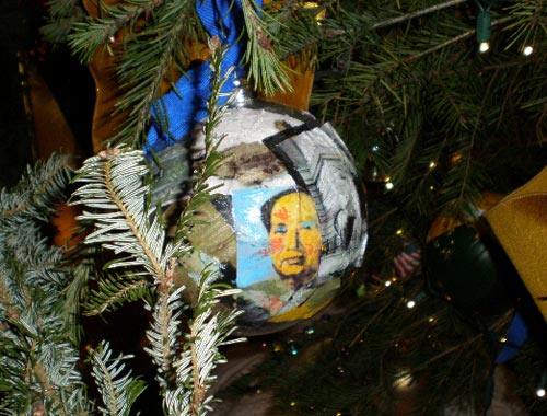 據(jù)12月25日出版的《環(huán)球時(shí)報(bào)》報(bào)道,在奧巴馬入主白宮的首個(gè)圣誕節(jié),擺放在白宮藍(lán)廳中央的一棵圣誕樹,引起外界的強(qiáng)烈興趣。這棵圣誕樹由奧巴馬夫人米歇爾親自“裝扮”,上面懸掛了中國(guó)領(lǐng)袖毛澤東頭像的裝飾。