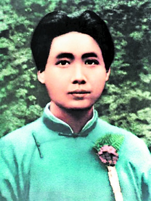從照片可以得知,那時(shí)候的毛澤東留著中分頭,顯得比較規(guī)矩莊嚴(yán),這正是他由激昂的性格趨向穩(wěn)重的一個(gè)階段。當(dāng)然,那張照片肯定是在照相館里面拍的,難免有點(diǎn)中規(guī)中矩,但仍掩飾不住毛澤東一以貫之的豪邁。在創(chuàng)作過(guò)程中,我以這張照片為基礎(chǔ),但并不拘泥于此照,還參考了此前毛澤東在韶山、在長(zhǎng)沙第一師范、在上海的形象,同時(shí)綜合毛澤東此后在瑞金、井岡山、長(zhǎng)征路上以及延安的照片,把青年和中年時(shí)期的毛澤東形象綜合起來(lái)思考,找出主席形象的不同時(shí)期的共性特征,最終塑造出長(zhǎng)發(fā)飄逸的青年毛澤東藝術(shù)形象。