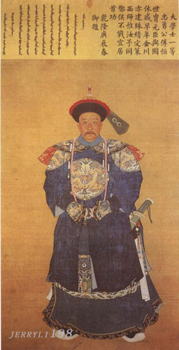 關(guān)于紫光閣功臣像,據(jù)北京故宮博物院宮廷繪畫家聶崇正先生考證,為“平定西域準回部”前后功臣各五十(前五十幅為乾隆御題。)“平定大小金川”前后功臣各五十。前五十幅為乾隆御題。“平定臺灣”五十功臣。“平定廓爾喀”功臣三十?傆嫸侔耸。目前知道存世僅二十幅。除少數(shù)幾幅私人收藏外,大多數(shù)為世界各地公私博物館收藏,F(xiàn)在知道的是: