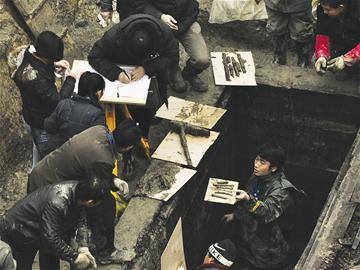 昨日,隨著鐵器、木器、青銅器、珍貴竹簡以及殘存頭蓋骨,陸續(xù)從嚴倉古墓出土,極大地重振了現(xiàn)場發(fā)掘人員的信心。