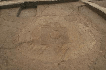 2、發(fā)現(xiàn)夯土祭壇,在山東地區(qū)尚屬首次發(fā)現(xiàn),國內(nèi)罕見。祭壇位于城內(nèi)南部正中偏西部位,距南墻21.5米。南北殘長34.5米,東西殘寬19米,殘存高度0.7—0.8米。中心為直徑5.5—6米的圓臺形,向外依次為不同土色的方形、長方形及圓形、橢圓形相套的夯筑臺基。外圍有多層厚5—12厘米不等的水平狀夯土堆積,間有白色沙土或灰燼薄層。祭壇邊緣多被晚期遺跡破壞,中心部位到春秋戰(zhàn)國時期仍然保存完好,其南北干道也從祭壇西側繞行,這表明,在戰(zhàn)國時期人們對祭壇仍然保持著某種程度的崇拜。