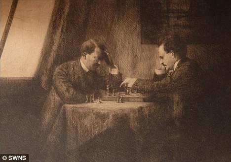 據(jù)《每日郵報》4月14日報道,一張在1909年創(chuàng)作的希特勒與列寧下棋的素描畫15日將在英國一家拍賣行進行拍賣,專家預計拍賣價為4萬英鎊。這個寬50.8厘米,高38.1厘米的素描畫,據(jù)考證也是唯一一幅同時有希特勒和列寧親筆簽名的畫作。
