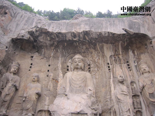 龍門石窟至今仍存有窟龕2100多個,造像10萬余尊,碑刻題記3600余品,抬頭舉目,滿眼盡是儀態(tài)萬千、美不勝收的藝術瑰寶。媒體記者應接不暇,紛紛拍照留念。龍門石窟最有名的雕像當屬第1280窟(奉先寺)的盧舍那大佛。盧舍那大佛通高約17米,頭部高4米,寶相莊嚴,氣度閑適。當記者凝視大佛的雙眼時,卻發(fā)現大佛也在俯視著你,莊嚴而不失親切,不語卻發(fā)人深省。龍門石窟越看越覺得看不夠,越看越覺得不可思議,這些佛像,迥異于我們尋常所見,形象生動,帶著一種異域的風情,向我們展示了當年燦爛的文化、高超的審美、精湛的技藝。