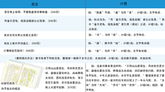 王德怡稱,目前所發(fā)現(xiàn)的閻校本《康熙順天府志》中出現(xiàn)的錯誤,集中出現(xiàn)在第七、八卷。清人張吉午《康熙順天府志》原有八卷,現(xiàn)存七卷。從第六卷開始,內(nèi)容開始變得復(fù)雜,處理起來難度也增加了許多。閻校本出現(xiàn)的錯誤大致分為三類:一是錯別字;二是標(biāo)點(diǎn)符號錯誤;三是注釋錯誤。