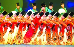 《萬(wàn)方樂(lè)奏》晚會(huì)以和田維吾爾族歌舞為主,由“序幕”、“有于闐”、“在綠洲”、“頌今朝”和“尾聲”5大板塊共14個(gè)節(jié)目組成。其中,萊帕爾歌舞《黨中央的政策亞克西》曾登臺(tái)今年央視春晚,備受觀眾歡迎。此外男子集體舞《大漠鼓舞》里,小伙子們手持面鼓擊鼓吟唱、頗具遠(yuǎn)古遺風(fēng)。女子集體舞《玉鐲舞》中,舞者佩戴玉鐲,婀娜起舞,清脆作響,猶如天女下凡。而融入了西域健舞、軟舞等舞蹈元素的《于闐樂(lè)舞》也再現(xiàn)了唐代宮廷歌舞的精華,表現(xiàn)了絲綢之路多元而厚重的文化。還有男女集體歌舞《豐收麥西來(lái)甫》融入了和田賽乃姆(維吾爾族舞蹈的一種)的藝術(shù)特點(diǎn),完美詮釋了綠洲喜慶、歡騰、和諧幸福的生活場(chǎng)景。整臺(tái)演出匯集了民間說(shuō)唱、民族歌曲、民間舞蹈、民族器樂(lè)等多種藝術(shù)樣式,展示了充滿魅力的和田人文風(fēng)情。 (記者 李洋)