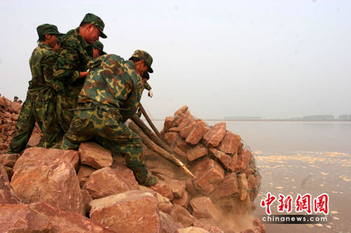 目前,鄭州市已組織駐鄭部隊(duì)官兵2800名和民兵預(yù)備役人員30000名分成兩個梯隊(duì),擔(dān)負(fù)黃河防汛任務(wù),另有部隊(duì)官兵和民兵預(yù)備役人員6700名負(fù)責(zé)水庫和內(nèi)河防汛。根據(jù)防汛預(yù)案,當(dāng)花園口出現(xiàn)4000至6000立方米每秒的洪水時,黃河部分灘區(qū)會漫灘進(jìn)水,部分險工、控導(dǎo)工程可能出現(xiàn)險情,警備區(qū)和沿黃人武部將動員組織第一梯隊(duì)民兵集結(jié)待命、做好搶險準(zhǔn)備,加強(qiáng)對險工險段的守護(hù),發(fā)現(xiàn)險情及時搶救,并及時救護(hù)受災(zāi)群眾。完