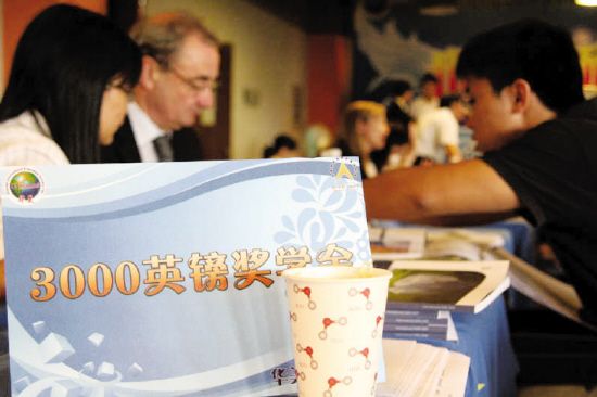 留學(xué)展上有學(xué)校打出高額獎(jiǎng)學(xué)金“懸賞招生” 本報(bào)記者 侯恕望 攝
