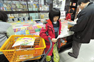 據(jù)新華書店負(fù)責(zé)人介紹,連日來,書店無論是客流量還是購書量都有明顯的增加!靶抡n標(biāo)系列的閱讀叢書、字帖類的書籍最受歡迎!痹跁莾(nèi),記者碰到了一位尋找字帖的小女孩。原來學(xué)校要求學(xué)生寒假練習(xí)寫字,指定了某本字帖作為練習(xí)用書,所以造成該書的暫時(shí)脫銷。