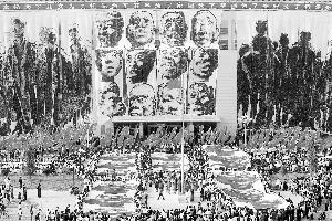 昨日,一場(chǎng)近萬名師生參與的行為藝術(shù),在中州大學(xué)上演,千名大學(xué)生齊揮黑色炭筆,在白色巨幅上描繪出21幅民工“老萬”頭像,每幅達(dá)50平方米。