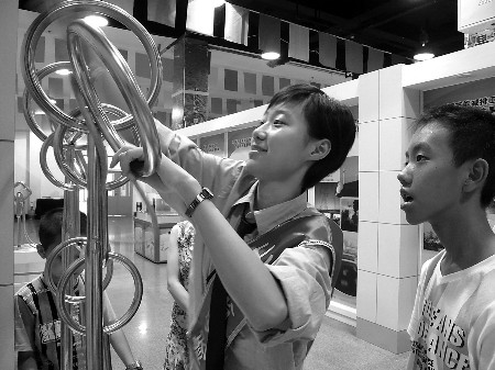 一些學(xué)生在省科技館當(dāng)起義務(wù)講解員。 徐潔攝