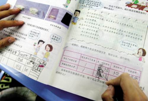 今年年初開(kāi)始,重慶市在360多萬(wàn)小學(xué)、初中學(xué)生中進(jìn)行了部分教科書(shū)的循環(huán)使用。石橋鋪小學(xué)的十多名學(xué)生調(diào)查發(fā)現(xiàn)由于不能在循環(huán)使用的教科書(shū)上寫(xiě)字答題,給老師和學(xué)生都帶來(lái)了“小麻煩”。