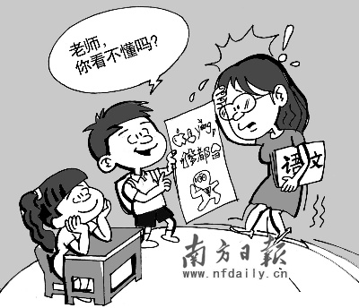 據(jù)了解,正因?yàn)椤盎鹦俏摹钡幕逎?所以不少同學(xué)會(huì)在寫(xiě)周記時(shí)使用,不想讓班主任窺見(jiàn)自己的心事。“平時(shí)媽媽愛(ài)翻我的日記,現(xiàn)在我用火星文她也奈何不了……”說(shuō)起“火星文”的“妙用”時(shí),廣州市第三中學(xué)一位女同學(xué)得意地笑了。