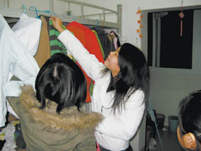 本報訊 實習生 高建慧 記者 魏瑩 文/圖 “有東西賣嗎?”晚飯過后,南大四年級女生小高坐在自己的寢室里,幾個低年級女生從門口探進腦袋問道,小高馬上熱情地領(lǐng)著她們來到自己的鋪位下,讓她們“盡情”挑選掛在那里的半新物品。經(jīng)過一番討價還價,幾個學妹最終以43元的價格買走了一件毛衣和一本英文書。