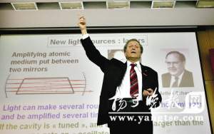 昨天,“霍尼韋爾·諾貝爾全球校園行”活動(dòng)為東南大學(xué)請(qǐng)來(lái)了重量級(jí)嘉賓——諾貝爾物理獎(jiǎng)獲得者,76歲的克勞德·科恩·坦諾奇(Claude Cohen-Tannoudji)教授。他以“光與物質(zhì)”為主題,與東大學(xué)子分享了他的個(gè)人經(jīng)歷和學(xué)術(shù)成就。在與媒體見(jiàn)面時(shí),科恩教授還主動(dòng)“報(bào)料”稱,他與祖籍江蘇太倉(cāng)的華裔科學(xué)家、美國(guó)能源部部長(zhǎng)朱棣文是好友。