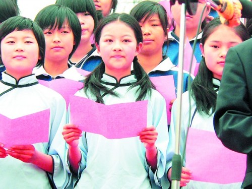 這是朗誦達(dá)人開賽以來記者見過的花樣最多的一次。在深情款款的朗誦聲中,一名女生翩然起舞,這是黎托中學(xué)專門準(zhǔn)備的配樂配舞朗誦。教師們自創(chuàng)的詩歌成為了此次朗誦的開場——“四月風(fēng)”,而此次朗誦大會的名字也正是命名為“四月風(fēng)”現(xiàn)場詩文朗誦會。一張張青春的臉,一首首動人的詩,高潮在最后掀起,壓軸的是那篇著名的《少年中國說》。只見學(xué)生們身著電視劇《恰同學(xué)少年》中學(xué)生們的服裝,齊聲朗誦著“少年強則國強……”參加《少年中國說》朗誦的是黎托中學(xué)的全校師生共計950人,高亢的聲音響徹云霄。