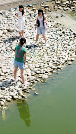 昨天上午9:00,大胡同附近的河邊傳來尖叫聲。循著聲音望去,只見河邊站著三名女孩,其中一名穿綠色T恤的女孩最靠近河水。“別過來,你們再走一步我就下河!闭f著,女孩把一只腳踩進水里,另外兩人見狀,只好停下腳步。幾個好心路人見狀趕緊拿出手機要報警,就在這時,幾名男女青年攔住了要報警的人。他們稱站在河邊的三個女孩都是他們的同伴,她們是在“演戲”,不會真的輕生,聽到這兒眾人才算放心。