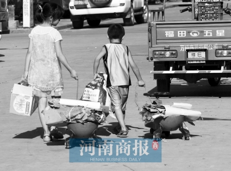 姐弟倆拉著童車賣廢品