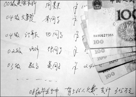 如果有錢,為什么不用來(lái)交學(xué)費(fèi)呢?昨日,通過(guò)知情人介紹,記者聯(lián)系上該校2006級(jí)學(xué)生小彭,至今他還有2000元學(xué)費(fèi)沒(méi)有交。