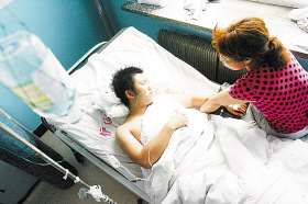 “我們什么情況都不知道,接到學(xué)校通知時(shí),孩子已經(jīng)被送到醫(yī)院了!”趙醒的母親不斷地給兒子揉手,“學(xué)校只告訴家長(zhǎng),孩子出事了,別的也沒(méi)說(shuō)什么!薄昂⒆邮潜焕渍鹇榱!”趙醒的奶奶說(shuō)。