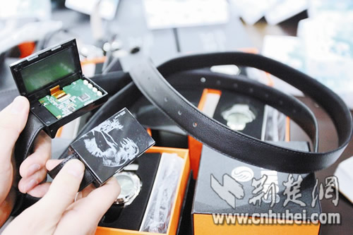 皮帶也能偽裝成作弊設(shè)備:皮帶頭其實(shí)是接收器,旁邊設(shè)有一個(gè)開關(guān),打開后可以向外翻下一個(gè)液晶屏。