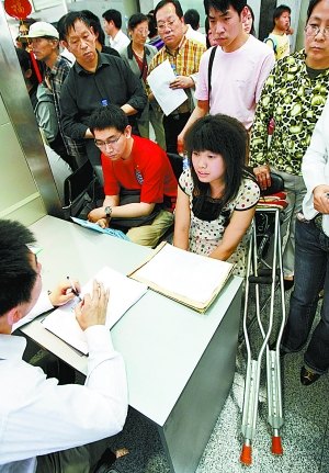 招聘會(huì)8時(shí)30分開(kāi)始。7時(shí)許,北京人才服務(wù)中心就已經(jīng)迎來(lái)了不少殘疾人。據(jù)市殘聯(lián)職業(yè)介紹中心主任李雪梅介紹,這里面還包括來(lái)自全國(guó)20多個(gè)省市的外地殘疾大學(xué)生。