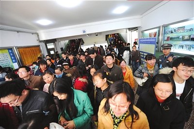 離考試還有1小時(shí),在海淀區(qū)育英學(xué)?键c(diǎn),很多考生已經(jīng)提前趕到。等待進(jìn)入考場(chǎng)的一位滿姓考生正抓緊最后時(shí)間翻看《參考消息》,以獲取更多信息!盀閭淇脊珓(wù)員,我已辭掉公司市場(chǎng)推廣工作3個(gè)月了,還上了補(bǔ)習(xí)班,這次是背水一戰(zhàn)!睗M先生說,這是他大學(xué)畢業(yè)4年后第一次參加考試,感覺有些緊張。