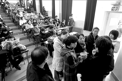 與往年一樣,今年中傳大仍推行網(wǎng)上報名,藝術(shù)類專業(yè)全部實行網(wǎng)上報名、網(wǎng)上交費(fèi)、網(wǎng)上約考。由于很多考生反映未報上名,學(xué)校特意在2月7日安排人員為考生現(xiàn)場補(bǔ)報,但部分考生仍未能趕上這次補(bǔ)報。為給考生考試機(jī)會,昨天上午,學(xué)校在教務(wù)處臨時設(shè)置了一個報名點,方便學(xué)生補(bǔ)報。
