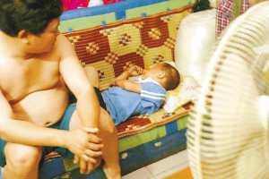 16歲的大女兒也已起床。對大女兒,陳彩霞很放心,因為她聽話、懂事,而且已經能為家里掙錢了。讓她揪心的是9歲的兒子淘淘。和名字一樣,兒子淘氣得讓她有時候覺得很窩火。這時候,淘淘還蜷在沙發(fā)上睡覺,那是他的床。