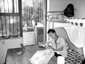 “我們在這里生活無憂,而且每天都還有志愿者和社會各界人士來探望!币覀ケ晦D(zhuǎn)移到成都中醫(yī)藥大學下汪家拐校區(qū),和小尹同安置在該校區(qū)的還有他學校的70多名高三同學。他住在一幢6層的宿舍樓,宿舍內(nèi)窗明幾凈,地面整潔,床鋪全是新的,枕頭也是新的,甚至書本也是新的。“全是政府配置的,書本則是志愿者送的”。小尹坐在床邊的桌子旁,復習著功課。小尹說,在這里他不僅感受到了溫暖,更可以安靜迎考,他一定要考好,否則對不起幫助他們的人。