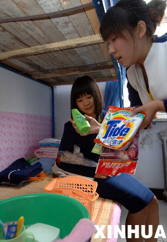為迎接這些災(zāi)區(qū)學(xué)生的到來,石家莊外語翻譯職業(yè)學(xué)院專門成立了“迎接四川災(zāi)區(qū)同學(xué)”籌備組,投入10多萬元為他們做好食宿安排,采購了被褥、蚊帳、睡衣、洗漱用品等日常生活用品,并且準(zhǔn)備了專項(xiàng)資金,每月將為每個學(xué)生發(fā)放500元生活補(bǔ)助。