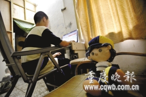 記者看到,程程用電腦在聊QQ,并能熟練地下載免費電話撥打!八螂娔X基本是自己學的。”雷先生說,因為家庭原因,程程幾乎沒讀書。