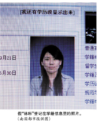 不過,回想起前幾天上網(wǎng)查詢學籍信息發(fā)現(xiàn)有兩個自己,并且有一個自己去年已經(jīng)在武漢提前畢業(yè)時,林琳還覺得有點后怕。林琳介紹說,由于面臨畢業(yè),這段時間學校正在為畢業(yè)生辦理離校手續(xù),老師要求他們登錄中國高等教育學生信息網(wǎng)核實自己的學歷情況。