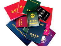 說著,周女士拿出來大小不一、顏色不同的證件十余本,摞在一起足有20厘米高。記者看到,里面除了幾個專業(yè)證件,還有“涉外秘書資格證”、“廣告從業(yè)資格證”、“健美操證”等。但諷刺的是,她現(xiàn)在從事的工作卻和其中任何一個證書都沒有關系。