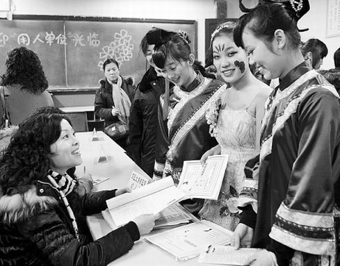 “今年學(xué)生們的總體期望值下降了,以前像寧夏、新疆這些地方要招人,根本沒人愿意去,特別是成績(jī)優(yōu)秀的學(xué)生,工資少于4000根本不考慮,但今年,很多學(xué)生自己降低了要求!痹陉兾鲙煼洞髮W(xué)就業(yè)指導(dǎo)中心辦公室采訪時(shí),記者遇到了該校外國(guó)語(yǔ)學(xué)院老師。