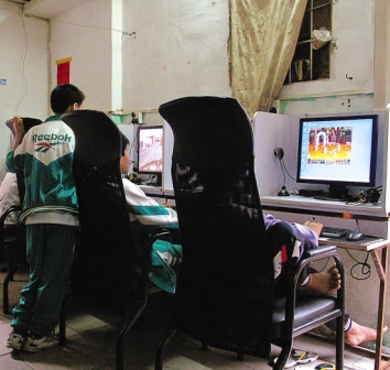 記者走進向西街一巷一間門面窄小的平房,里面悶熱非常卻“硝煙彌漫”,電腦前5個十來歲的學(xué)生并排坐著,玩興正濃,額頭上全是汗。墻上沒掛營業(yè)執(zhí)照,只在收銀臺前高懸著“通宵10元,一個鐘2元,會員1.5元”的牌子。