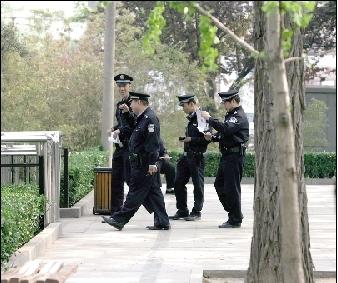 昨天下午2點30分左右,數(shù)輛警車停到中國美術(shù)館東側(cè)一社區(qū)花園外。10余名民警沖進花園,直奔花園南門西南角的兩個書包。“警察們圍著書包轉(zhuǎn),不停地打電話!碑敃r在花園的一位老太太說,一名民警悄悄靠近書包用耳朵貼著書包聽,但好像并未發(fā)現(xiàn)動靜。隨后,民警開始向花園里其他群眾做調(diào)查。