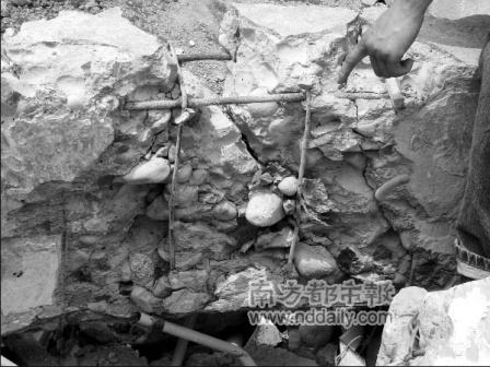 除此,教室的承重梁是由鋼筋混凝土澆灌的,但里面充斥各種碎磚塊、木頭等雜物。“混凝土成分不干凈,就好像我們吃的米有沙子一樣!毙苡篮辣扔鞯卣f,這樣的房梁無法承重。