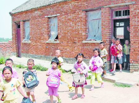 泌陽縣下碑寺鄉(xiāng)羅莊小學(xué)幼兒班的34名孩子,一直在危房里上課。房頂一有響聲,老師立即組織孩子撤出教室。