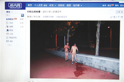 這篇帖子名為《校內(nèi)網(wǎng)上驚現(xiàn)清華紫操裸奔圖》。文中稱,有3名學(xué)生半夜在紫荊操場裸奔,并在校內(nèi)網(wǎng)上傳了照片。據(jù)了解,他們是清華大學(xué)美術(shù)學(xué)院應(yīng)屆畢業(yè)生。記者隨后看到了這組題目是“清華少數(shù)人的裸奔節(jié)”的照片,共50余張。照片內(nèi)的男子均半裸或全裸,做出各種姿勢。全裸的照片在隱私部位打有馬賽克。