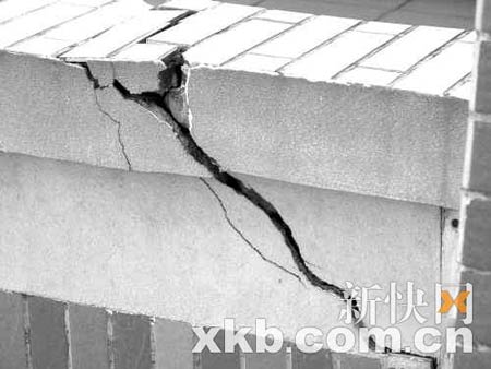 記者調(diào)查了解到,全校幾乎所有的建筑均出現(xiàn)了不同程度的沉降現(xiàn)象,并導(dǎo)致許多墻面破裂。