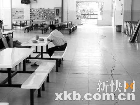 食堂地面出現(xiàn)長長裂縫。李詠祁/攝