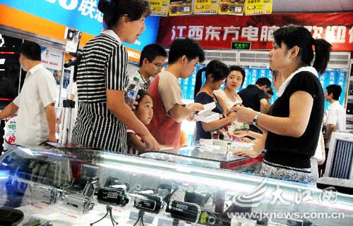 電腦、手機(jī)、MP3已經(jīng)成為目前一些家庭經(jīng)濟(jì)條件較好的大學(xué)生的“新三樣”,成為學(xué)生新學(xué)期的新裝備。某商場(chǎng)的一名導(dǎo)購員告訴記者,開學(xué)前的這段時(shí)間是數(shù)碼產(chǎn)品的銷售旺季,各商家均紛紛采取各種促銷手段來吸引學(xué)生群體。正在南昌市一電子數(shù)碼城購買MP3的大一學(xué)生小王告訴記者,考上大學(xué)時(shí)父母就答應(yīng)給她買手機(jī)和MP3,今天和媽媽一起出來挑選。