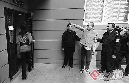 王同學被押回小區(qū)指認偷盜現(xiàn)場。 江洋 攝